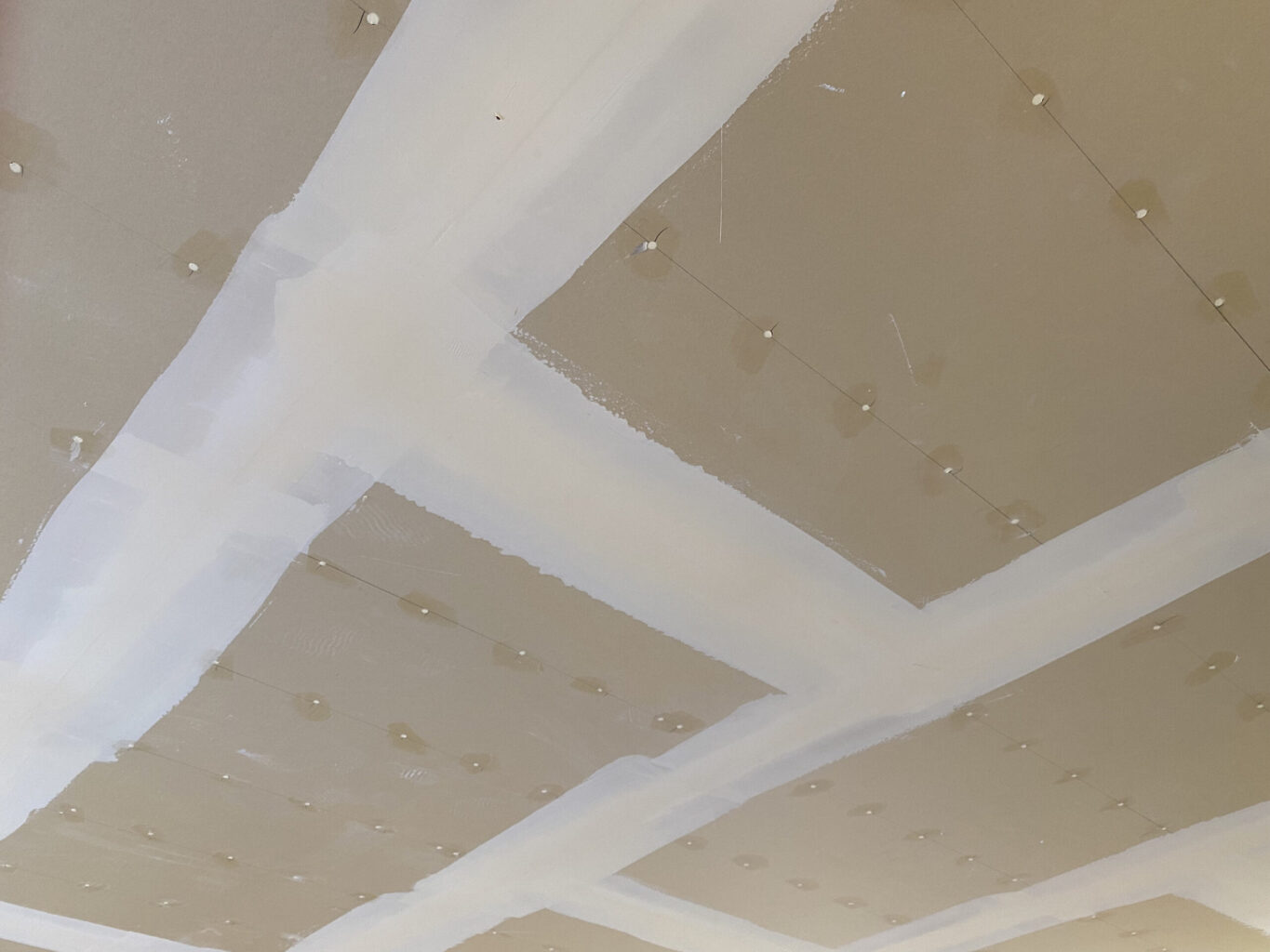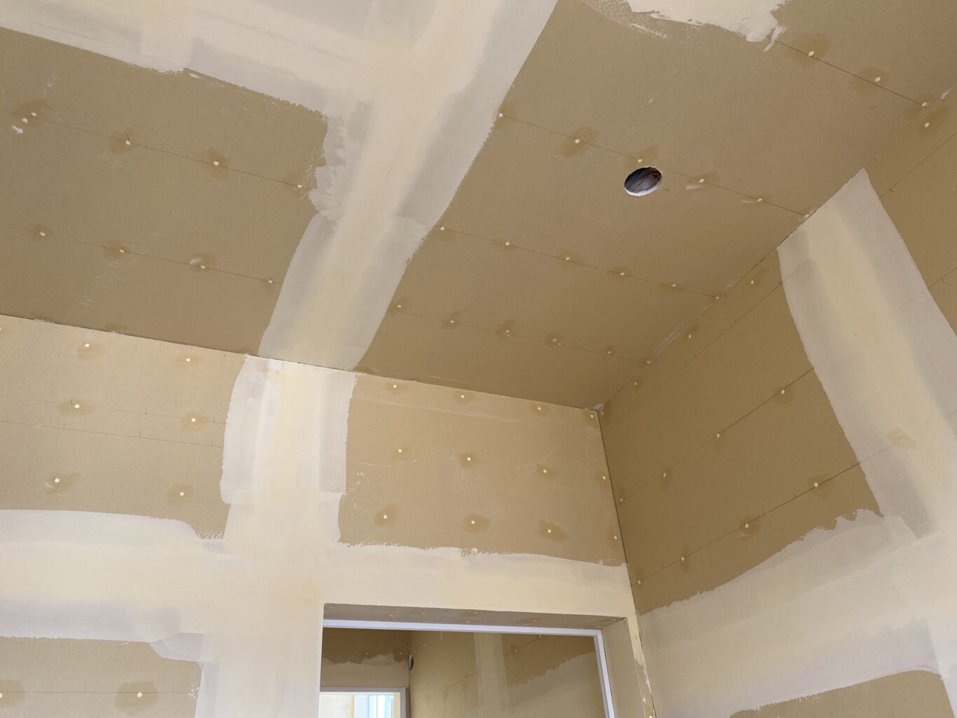 パテ処理は、石膏ボードの継ぎ目やビス穴、壁の凹凸をパテで埋め、表面を滑らかにする作業です。