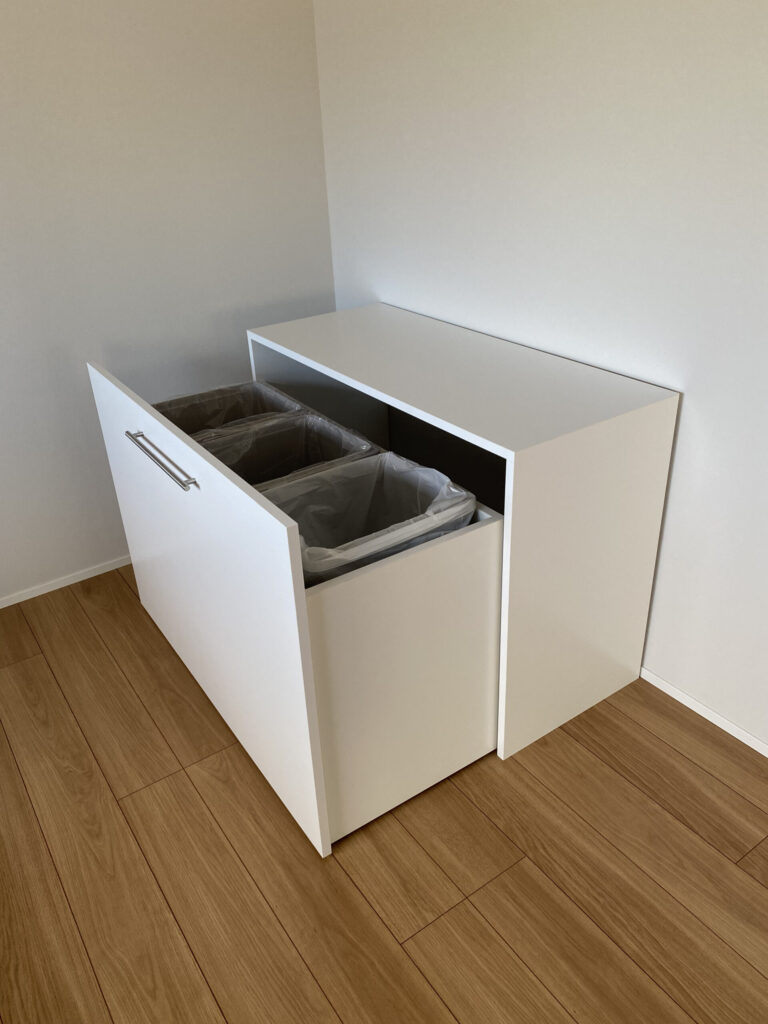 こちらは施主様のご要望でゴミ箱収納を造作しました。