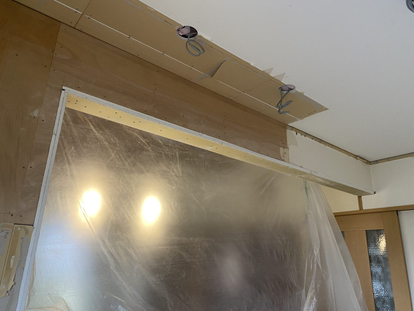 スッキリとした空間にするため、戸棚が付いていた垂れ壁は解体して無くし、廻り縁も取り除きました。