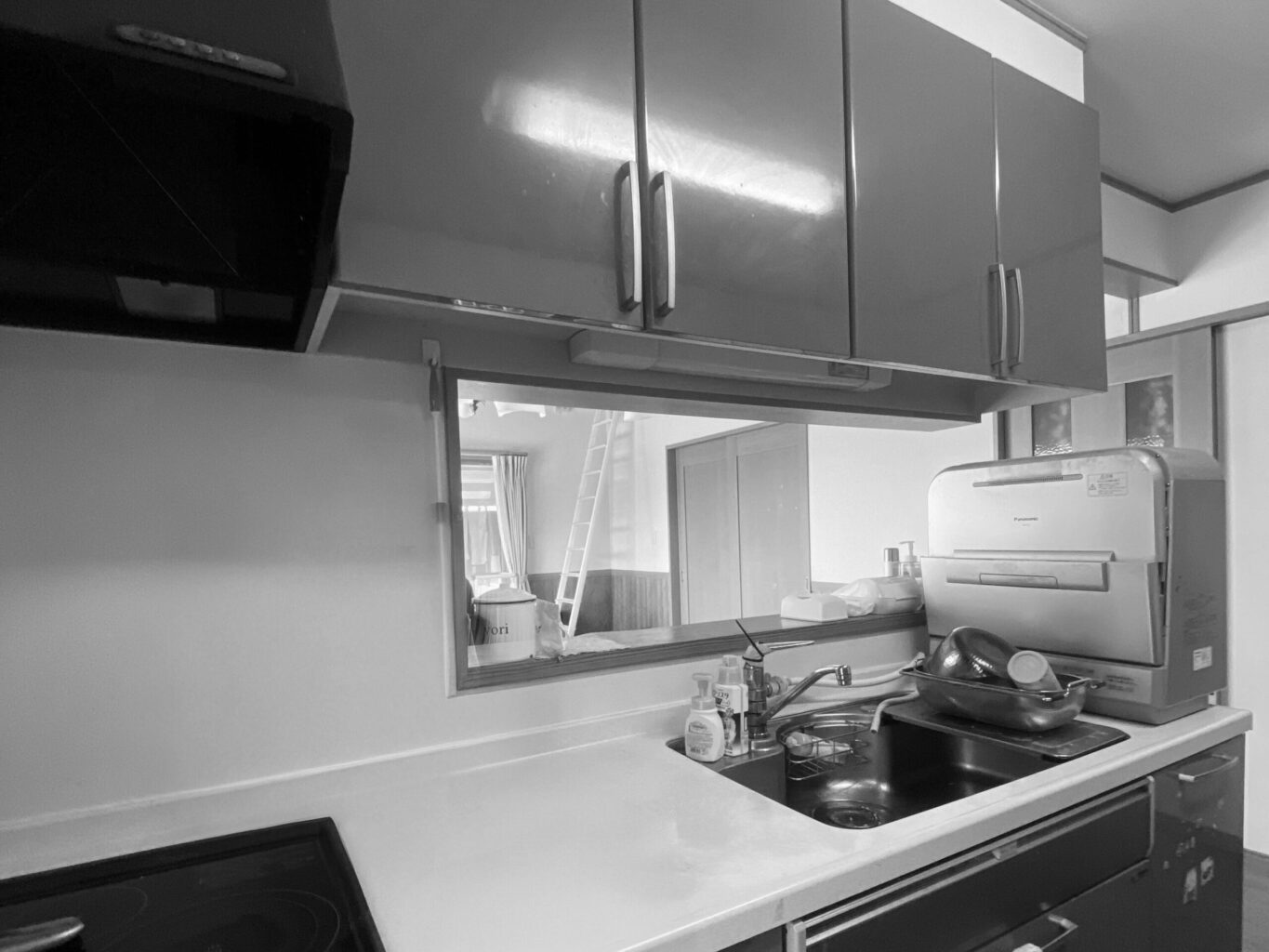 既存のキッチンには食洗機が付いておらず、キッチンの上に据え置き型の食洗機を置いて使用されていました。